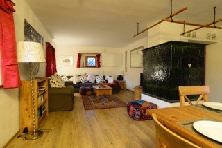 Die Unterkunft verfügt über eine moderne Einbauküche, komfortabel und gemütliches Wohnzimmer mit traditionellen Kachelofen, 3 Doppelzimmer, sowie einen großen Außengarten, privater Parkplatz und eine Garage. Handtücher und Bettwäsche sind ebenfalls vorhanden.