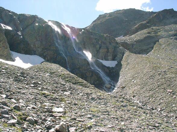 Hinter der Schweinfurter Hütte schlagen wir den Weg Nr.: 146 (Gubener Weg) ein. Dieser führt über das Finstertaler Joch und Stausee zur Dortmunder Hütte.