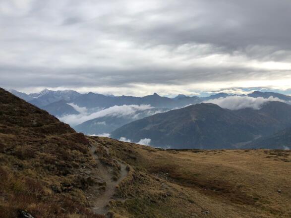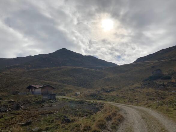Vom Parkplatz neben dem Liftstüberl gehts zunächst auf der asphaltierten Straße dem Bach entlang taleinwärts. Nach gut 200m biegt auf der linken Seite eine steile Straße ab, die durch die Wiesen rund um den Lift ziemlich gerade nach oben führt. Nachdem ein kleines Waldstück durchquert wurde wird sie wieder etwas flacher und führt vorbei an Stadel dem kleinen Plateau folgend taleinwärts, bis sie schließlich am Beginn des Waldes in einen Forstweg übergeht. Wer mit dem Rad unterwegs ist, der folgt diesem, für Wanderer hingegen besteht auch die Möglichkeit über den Steig mit der Nr. 125 aufzusteigen. Dieser biegt unmittelbar bei der ersten Kehre des Forstweges ab und zieht dann vorbei an den Trunawasserfällen über den Fichtenwald nach oben. Kurz vor Beginn der Bergmähder vereinigen sich Forstweg und Steig wieder und führen gemeinsam vorbei an der Trunahütte zurück bis zur Trunaalm. Die Trunaalm, ganz hinten im Truna Talkessel gelegen, ist ein idealer Ort das Rad abzustellen - der Forstweg wird ab hier nämlich immer mehr zum Karrenweg und etwas grober. Von hier aus sind es bis zum Trunajoch noch gut 200hm, die schnell zurückgelegt sind. Am Jöchl trifft man auf dem von der Bergeralm kommenden Hochweg (Teil der Gschnitztaler Hüttentour) mit der Nr. 94, der weiter bis zum Gstreinjöchl im hintersten Obernbergtal führt. Diesen folgen wir eine Weile dem Grat entlang in westlicher Richtung bis zu einem Wegweiser. Hier biegt der Hochweg nach unten ab, wir hingegen bleiben am Grat und folgen dem Steig mit der Nr. 41 die letzten 300hm bis zur Rötenspitz.