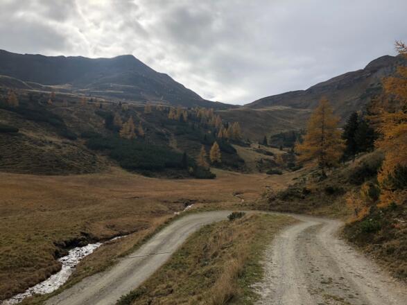 Von der Haltestelle gehts dann über eine Gemeindestraße hinunter zu Talsohle und dem Bach, den man anschliesend taleinwärts folgt. Nach insgesamt rund 800m ereicht man dem Parkplatz beim Liftstüberl, dem Ausgangspunkt der Tour.