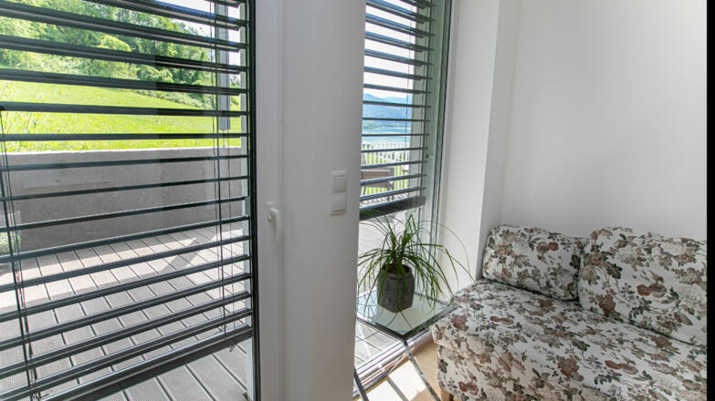 Direkt im Eingangsbereich befindet sich eine gut durchdachte Garderobe, über eine Treppe erreicht man den hellen Wohn- und Essbereich sowie die Küche mit Blick zum See. Hier befinden sich zwei der 5 Schlafzimmern, ein Gäste-Bad mit WC, ein Wirtschaftsraum mit Waschmaschine und Trockner. Auf der dritten Ebene befinden sich noch zwei weitere Schlafzimmer, eine Leseecke, sowie ein großes Badezimmer mit WC. Das Highlight ist jedoch das „Masterbedroom“ mit Ankleidezimmer und lichtdurchflutendem Bad mit Dusche, Badewanne und WC. In diesem Raum können sie fast aus jedem Winkel den atemberaubenden Seeblick einfangen.